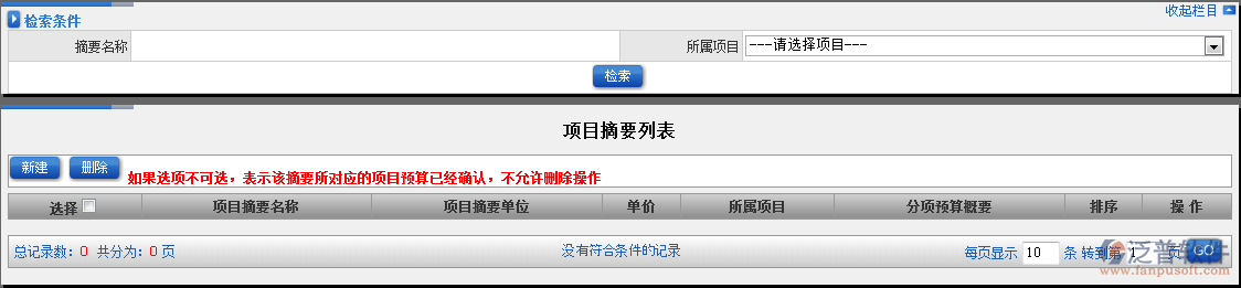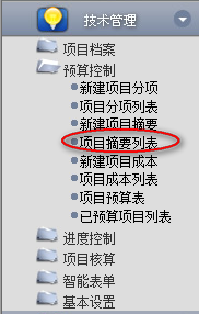 1.點擊辦公模式→技術(shù)管理→預(yù)算控制→項目摘要列表,進入“項目摘要列表”窗口: