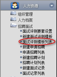 1.點(diǎn)擊辦公模式→行政管理→招聘面試→面試評(píng)測模板列表,進(jìn)入“面試評(píng)測模板列表”窗口:
