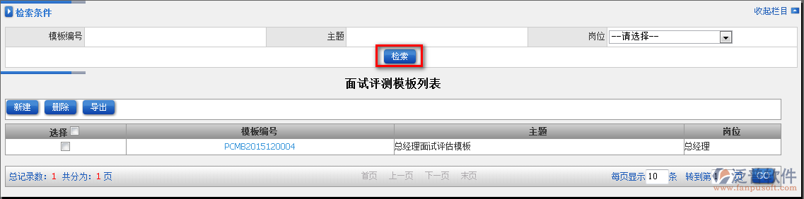 2.點(diǎn)擊【檢索】查詢面試模板