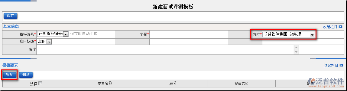 1.點(diǎn)擊辦公模式→行政管理→招聘面試→新建面試評測模板,進(jìn)入“新建面試評測模板”窗口: