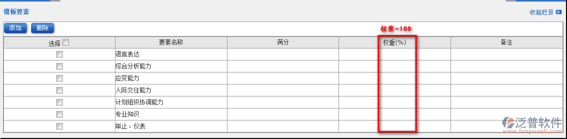 4.設(shè)置各項(xiàng)要素的分值和權(quán)重,權(quán)重按照100%來分配