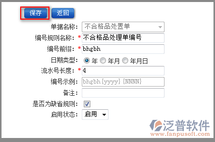 3、填寫完單據(jù)編號(hào)中的相關(guān)信息,點(diǎn)擊【保存】即可完成單據(jù)編號(hào)的新增。如圖:
