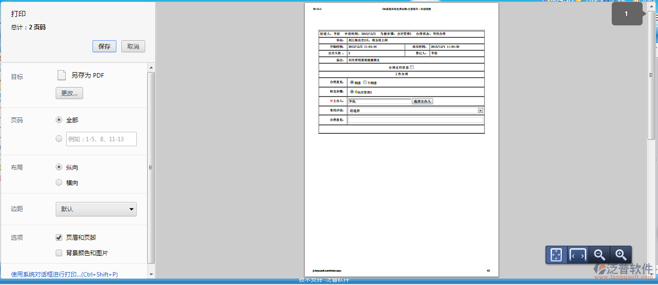 OA辦公系統(tǒng)中出差報(bào)銷單可以直接在系統(tǒng)中進(jìn)行打印,方便員工直接拿到財(cái)務(wù)處進(jìn)行報(bào)賬處理。打印頁面可以調(diào)整整個(gè)打印表單大小,可根據(jù)紙張大小調(diào)整。