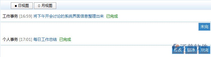 在日常安排中對已完成的事務點擊完成。狀態(tài)會顯示已完成。