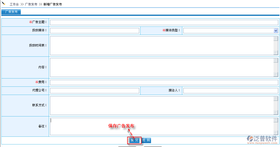 首先進(jìn)入到【銷(xiāo)售系統(tǒng)】—【市場(chǎng)管理】—【廣告發(fā)布】,如圖: