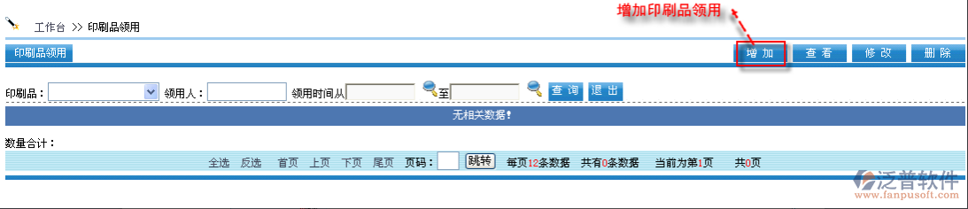首先進(jìn)入到【銷(xiāo)售系統(tǒng)】—【市場(chǎng)管理】—【印刷品管理】—【印刷品領(lǐng)用登記】,如圖: