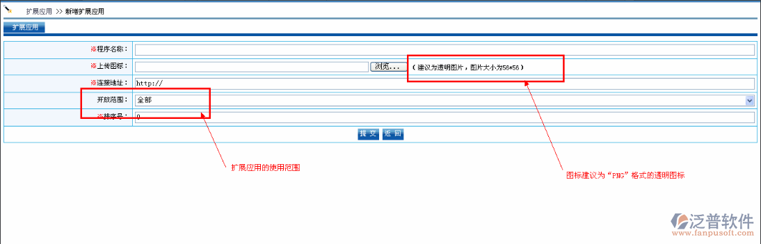 點擊【增加】進入擴展應用增加頁面,如圖: