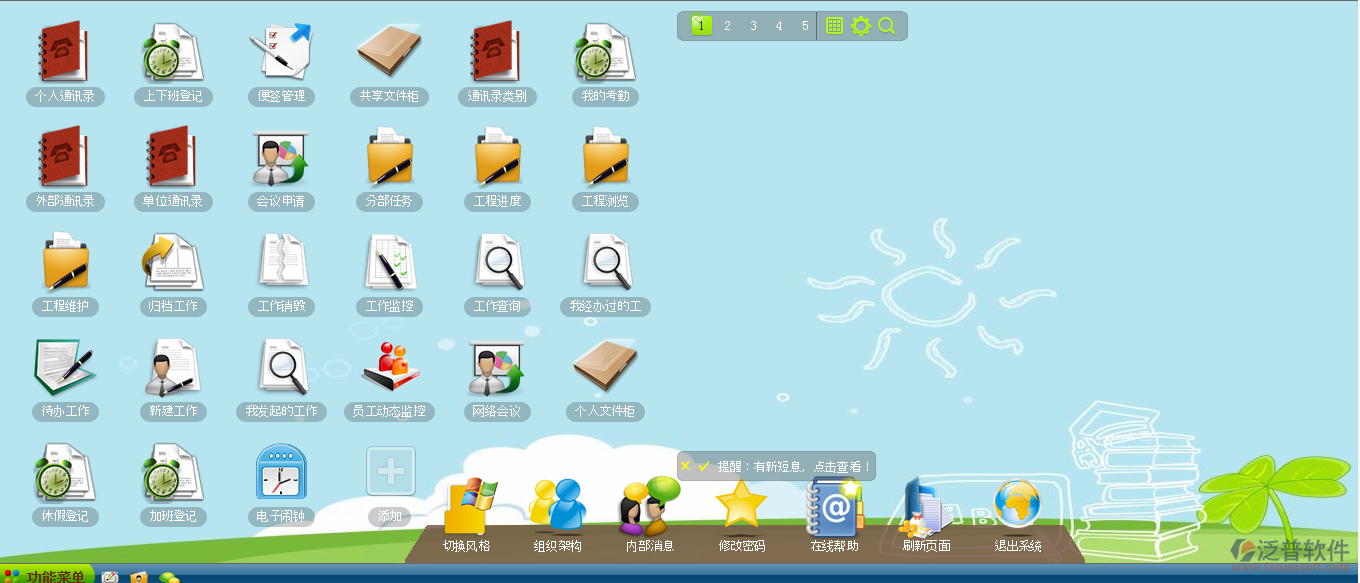 個人門戶:內(nèi)部郵箱、內(nèi)部短消息、工作日程、工作日志、通訊簿;