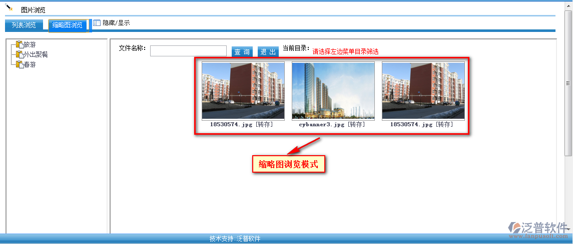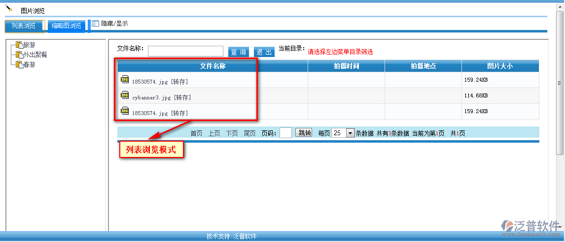 上傳后的圖片,在圖片瀏覽模塊中可以進(jìn)行查看,主要分為【列表瀏覽】與【縮略圖瀏覽】2種模式