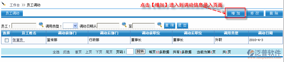 點擊【增加】進入到調(diào)動信息錄入頁面,如圖: