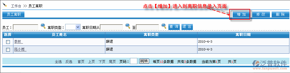 點擊【增加】進入到離職信息錄入頁面,如圖: