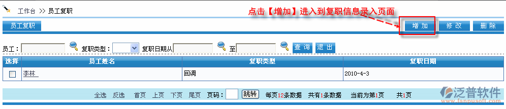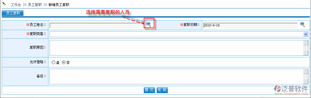 首先進入到【人力資源】—【人事管理】—【員工復(fù)職】,如圖: