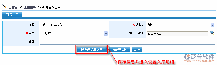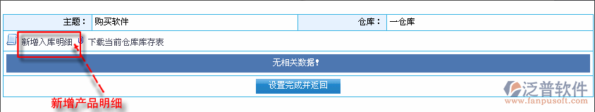 點(diǎn)擊【保存并設(shè)置明細(xì)】保存信息并進(jìn)入設(shè)置入庫(kù)明細(xì),如圖: