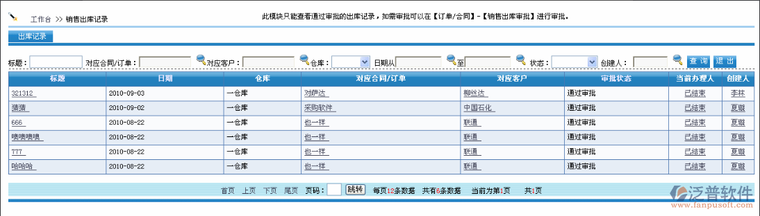 首先進(jìn)入到【生產(chǎn)系統(tǒng)】—【庫(kù)存管理】—【出庫(kù)單】—【銷售出庫(kù)記錄】,如圖: