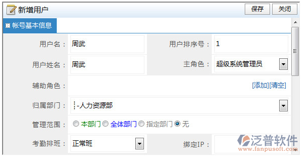 如在系統(tǒng)中新建一個用戶名為“周吳”的用戶。點擊保存新增成功。