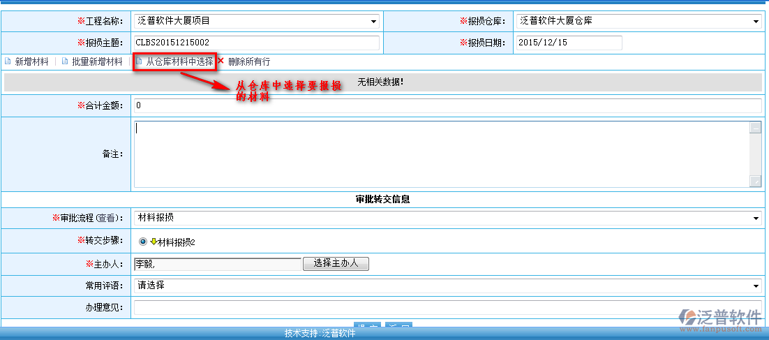如何進(jìn)行材料報(bào)損,進(jìn)入【項(xiàng)目管理】—【材料管理】—【材料報(bào)損】