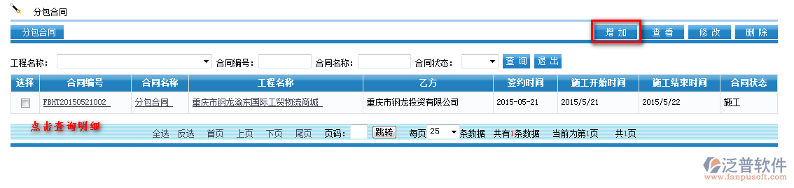 進入【項目管理】—【分包管理】—【分包合同】