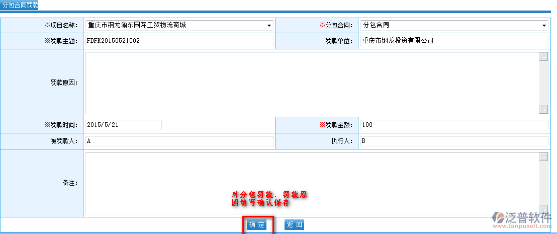 | 分包單位罰款分類設置 | |