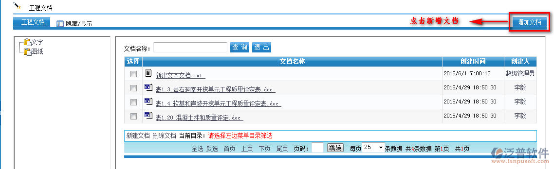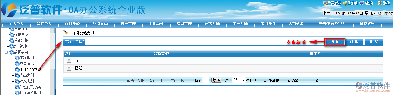 首先需要新建文檔的分類,如何新建文檔目錄,首先進入【項目管理】—【基礎(chǔ)設(shè)置】—【數(shù)據(jù)字典】—【工程文檔類型】