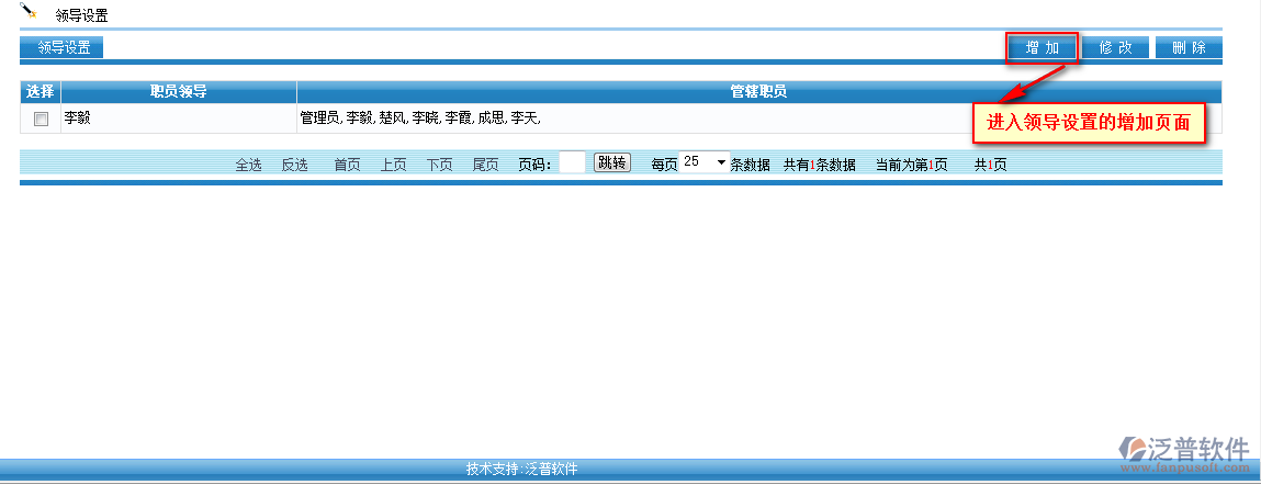 點(diǎn)擊【增加】進(jìn)入領(lǐng)導(dǎo)設(shè)置新增頁面