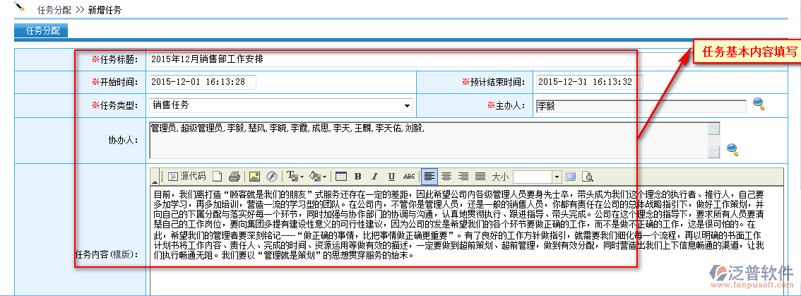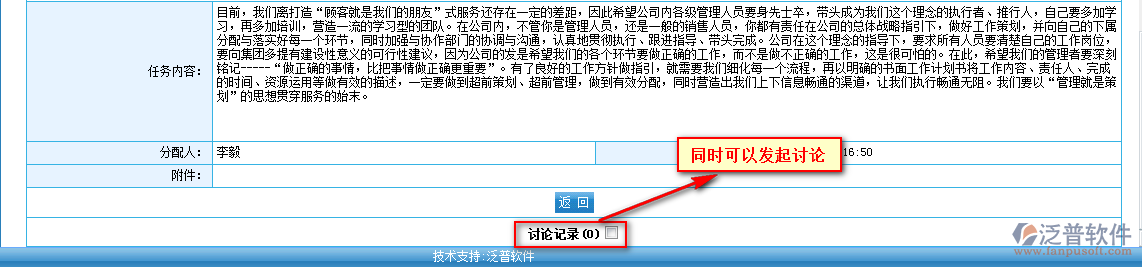 通過工作任務(wù)能夠讓日常工作中的任務(wù)安排有跡可循、善始善終,對(duì)任務(wù)的布置、執(zhí)行、匯報(bào)、檢查進(jìn)行全過程的管理,而且領(lǐng)導(dǎo)也可以了解到任務(wù)的執(zhí)行進(jìn)度和情況,并可隨時(shí)對(duì)員工進(jìn)行指導(dǎo)和批示,幫助任務(wù)的圓滿完成。支持任務(wù)在線匯報(bào)和檢查,形成任務(wù)布置和反饋體系。支持任務(wù)限時(shí)匯報(bào),支持任務(wù)日記匯報(bào),支持任務(wù)執(zhí)行提醒,提高員工執(zhí)行力。支持每個(gè)任務(wù)的多人討論。支持任務(wù)績(jī)效分析。