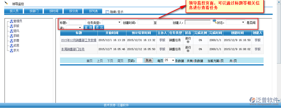 其中主辦任務(wù):管理用戶主辦的任務(wù),只有“主辦人”才能更改任務(wù)的狀態(tài)。主辦人可對(duì)任務(wù)進(jìn)行分解、查看、匯報(bào)操作。