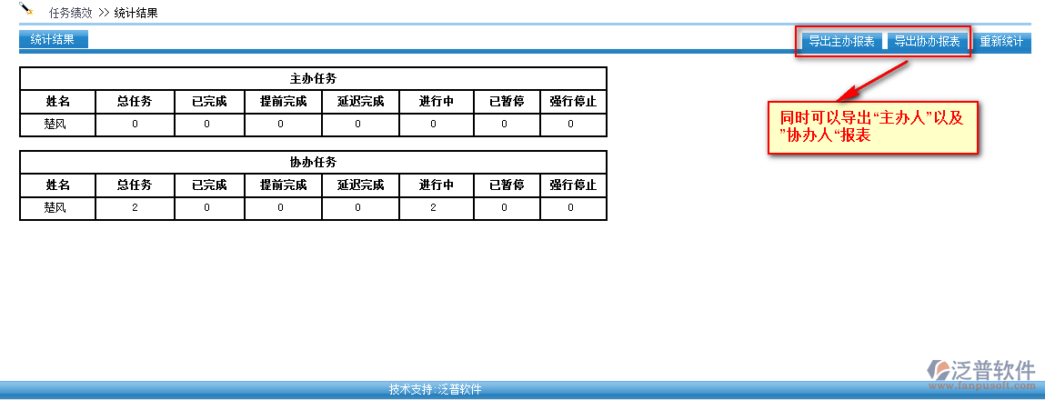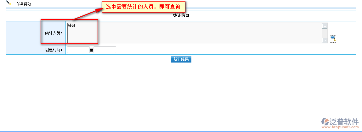 選中需要統(tǒng)計(jì)的人員以及點(diǎn)擊【統(tǒng)計(jì)結(jié)果】即可進(jìn)入【任務(wù)績(jī)效】管理頁面