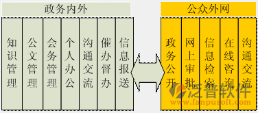泛普軟件政務(wù)協(xié)同辦公解決方案以泛普軟件OA協(xié)同管理平臺(tái)為基礎(chǔ),通過(guò)知識(shí)管理、工作流引擎、自定義平臺(tái)、權(quán)限管理模型、門戶管理等基礎(chǔ)模塊為各級(jí)黨政機(jī)關(guān)搭建政務(wù)內(nèi)網(wǎng)和公眾外網(wǎng)。政務(wù)內(nèi)網(wǎng)和公眾外網(wǎng)面向不同的對(duì)象提供不同的服務(wù)功能,通過(guò)基礎(chǔ)管理平臺(tái)實(shí)現(xiàn)信息的統(tǒng)一管理、業(yè)務(wù)審批流程的內(nèi)外聯(lián)通以及在線互動(dòng)交流。