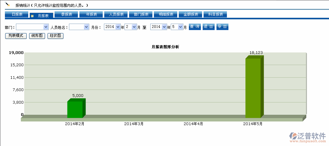 (3)可以按照日?qǐng)?bào)表,月報(bào)表,季報(bào)表,年報(bào)表,部門,人員等圖形,表格報(bào)表進(jìn)行分析
