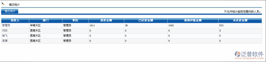 (3)可對員工的借還款差值進(jìn)行統(tǒng)計(jì)。