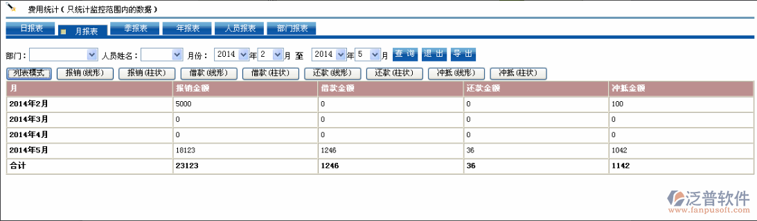 (4)可進(jìn)行報(bào)銷抵扣,借款,還款進(jìn)行綜合同比統(tǒng)計(jì)。
