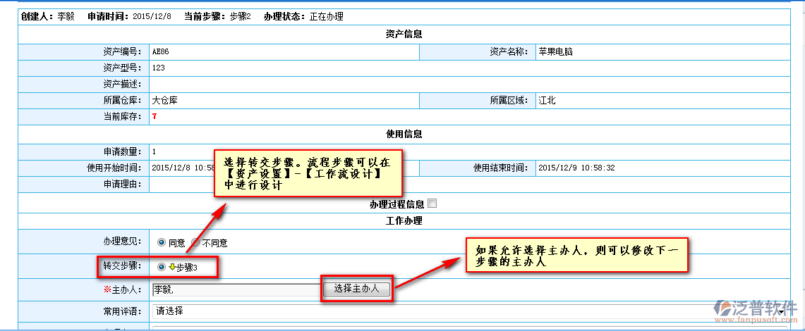 點(diǎn)擊資產(chǎn)名稱進(jìn)入到審批頁(yè)面,如圖:
