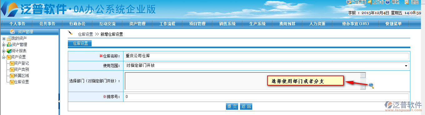 一般作為集團(tuán)公司OA系統(tǒng),可能使用的時(shí)候各子公司不在一個(gè)辦公室區(qū)域或者一個(gè)城市。那么資產(chǎn)管理也是分開自行管理和存放的,所以在使用資產(chǎn)管理之前需要對(duì)倉庫進(jìn)行設(shè)置。