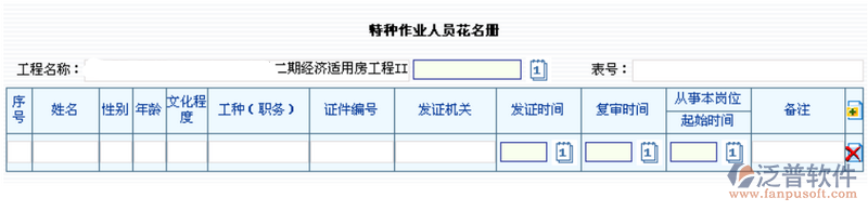 項(xiàng)目特種作業(yè)人員執(zhí)證情況:登記界面如下圖所示。
