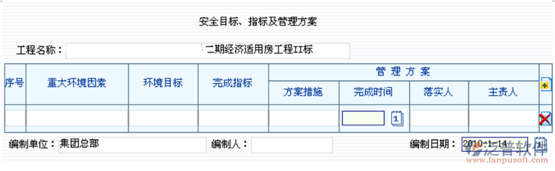 安全目標(biāo)指標(biāo)管理方案:登記界面如下圖所示。