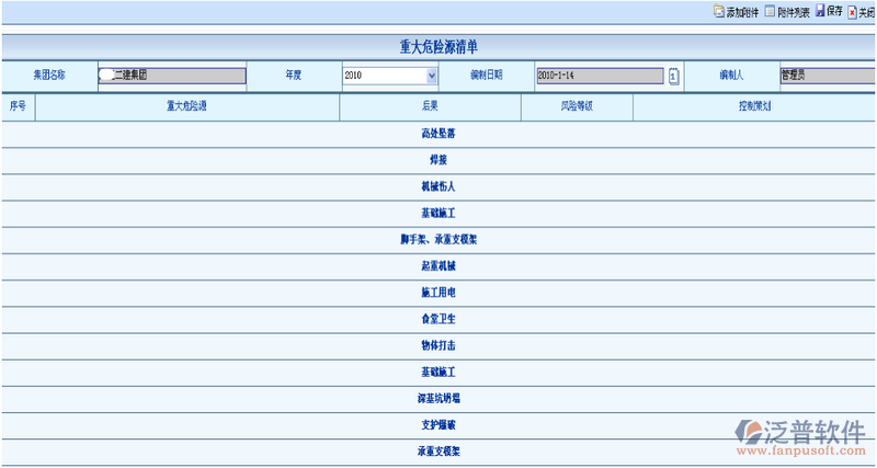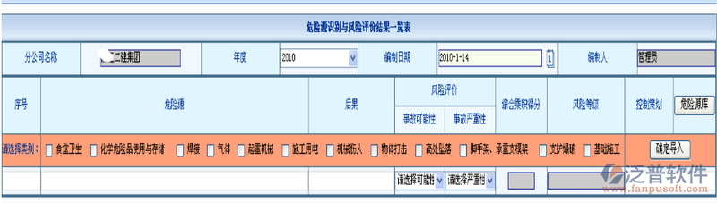 分公司年度危險(xiǎn)源辨識(shí)和風(fēng)險(xiǎn)評(píng)價(jià),界面和操作方法和前一個(gè)模塊相同。