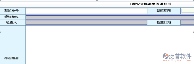 安全隱患整改通知,整改通知登記界面如下圖所示: