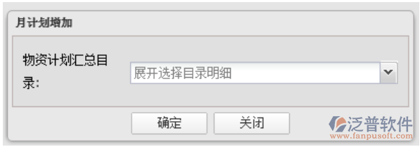 1. 序號(hào)、編號(hào)、材料名稱(chēng)、規(guī)格型號(hào)、單位、計(jì)劃總量、開(kāi)累采購(gòu)數(shù)量:點(diǎn)擊“序號(hào)”下方的【增加】按鈕,新增第一條明細(xì)項(xiàng),彈出“月計(jì)劃增加”對(duì)話框,如下圖所示: