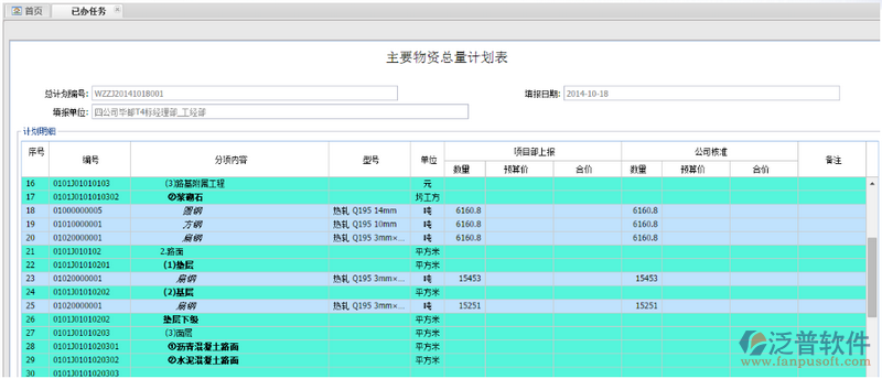 當前位置:工程項目OA系統(tǒng) > 建筑施工OA系統(tǒng) > 功能介紹 > 材料管理 > 材料需求計劃