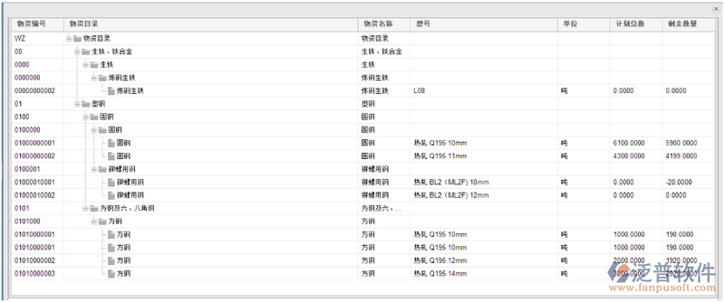 注意:因為在物資總計劃中,要以樹形顯示業(yè)主合同清單,清單下級的物資從客戶端的“主要材料消耗數(shù)量”中添加,所以只有在客戶端導入了業(yè)主清單和“主要材料消耗數(shù)量”,加載出的表單的計劃明細中才會有內(nèi)容,否則,計劃明細為空白。