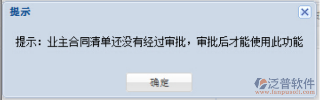 1. 在進行合同內(nèi)驗工計價之前,必須先導入對應的業(yè)主清單,否則會出現(xiàn)以下提示信息: