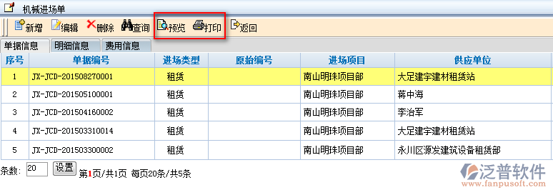 5、泛普軟件-工程項目管理軟件為用戶提供直接打印功能,在系統(tǒng)中可直接選中相關(guān)單據(jù)點擊【打印】即可進行相關(guān)數(shù)據(jù)打印操作。如圖:
