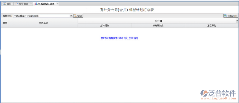 通過(guò)【功能菜單—統(tǒng)計(jì)報(bào)表—物資計(jì)劃匯總表】進(jìn)入“機(jī)械計(jì)劃匯總表”界面: