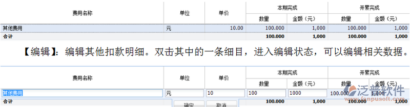 【編輯】:編輯其他扣款明細。雙擊其中的一條細目,進入編輯狀態(tài),可以編輯相關數(shù)據(jù)。
