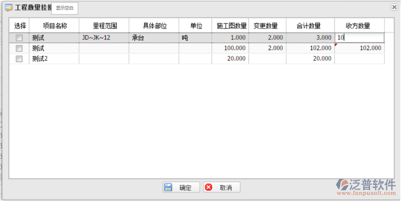 2) 點(diǎn)擊本次收方數(shù)量會(huì)彈出“工程數(shù)量掛接”頁(yè)面,如下圖:
