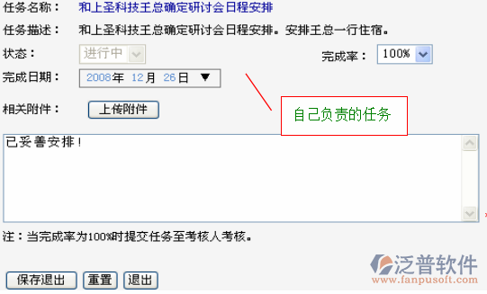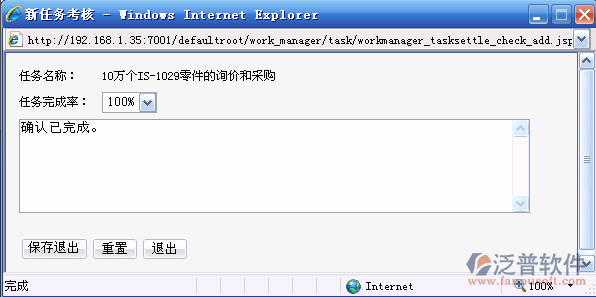 點(diǎn)擊考核按鈕,即對(duì)任務(wù)進(jìn)行考核確認(rèn)。確認(rèn)任務(wù)完成率為100%,這個(gè)任務(wù)就自動(dòng)從“待考核任務(wù)”轉(zhuǎn)移到“已完成任務(wù)”。