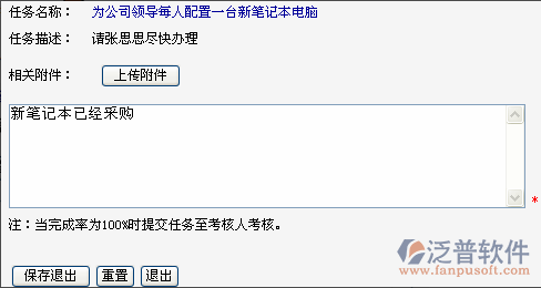 點(diǎn)擊任務(wù)匯報(bào)按鈕進(jìn)行任務(wù)匯報(bào)。對(duì)于自己參與的任務(wù),只能填寫(xiě)任務(wù)匯報(bào)內(nèi)容。對(duì)于自己負(fù)責(zé)的任務(wù),除了填寫(xiě)任務(wù)匯報(bào)內(nèi)容外,還可以設(shè)置狀態(tài)和完成率。