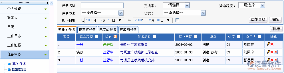 點(diǎn)擊“我的任務(wù)”,在右側(cè)默認(rèn)顯示我所有接收到的、進(jìn)行中的任務(wù),還有“新增”按鈕。