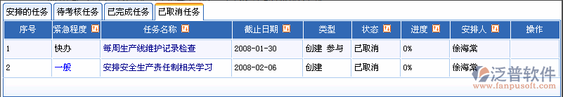 5、已取消任務(wù)列出所有自己安排(創(chuàng)建)的、后來(lái)又取消的任務(wù)。