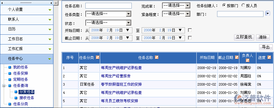 有權(quán)限的用戶(hù)可以進(jìn)行任務(wù)查詢(xún)。任務(wù)查詢(xún)按分發(fā)任務(wù)和接收任務(wù)分類(lèi)。